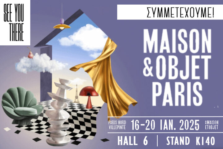 Συμμετέχουμε στην έκθεση Maison & Objet στο Παρίσι 16 – 20 Ιανουαρίου, θα μας βρείτε στο Hall 6, Stand K140. Σας περιμένουμε!